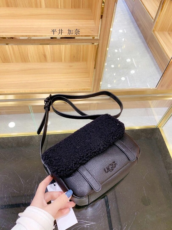 شنتة كتف UGG جلد فرو- اسود