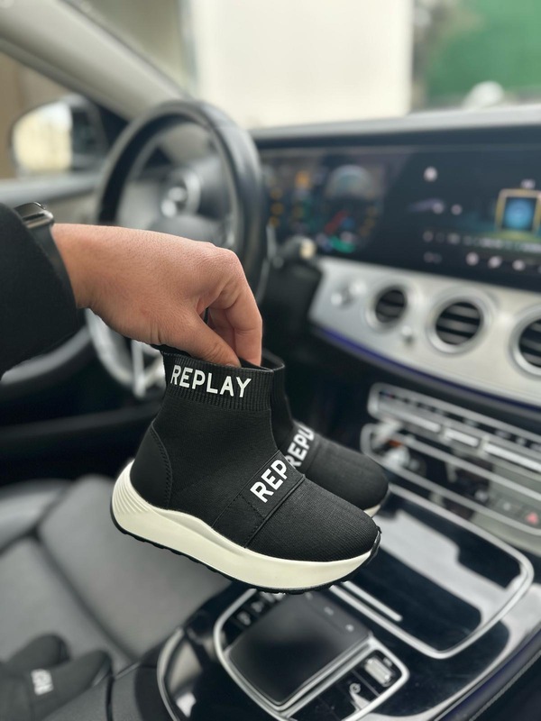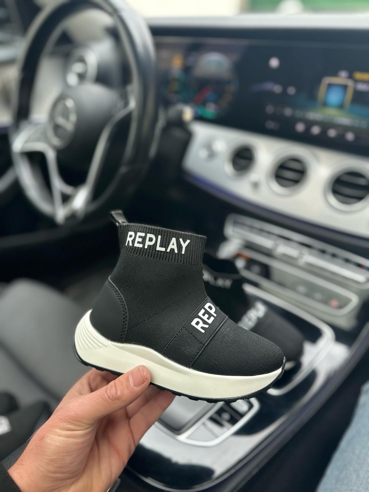 حذاء REPLAY أطفال - اسود ابيض ارضية بيضة