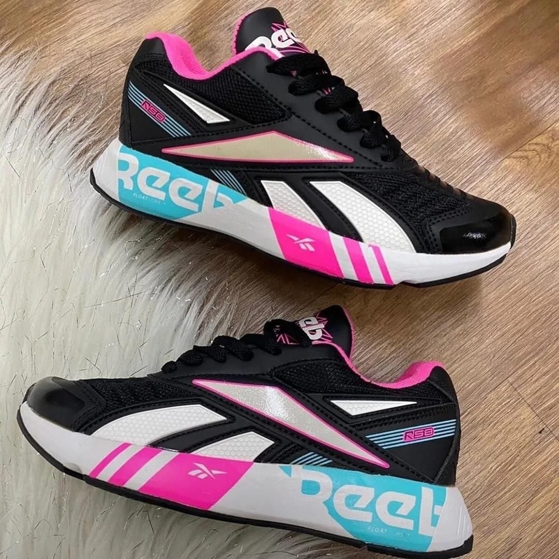 حذاء REEBOK RS8 - اسود ابيض زهري
