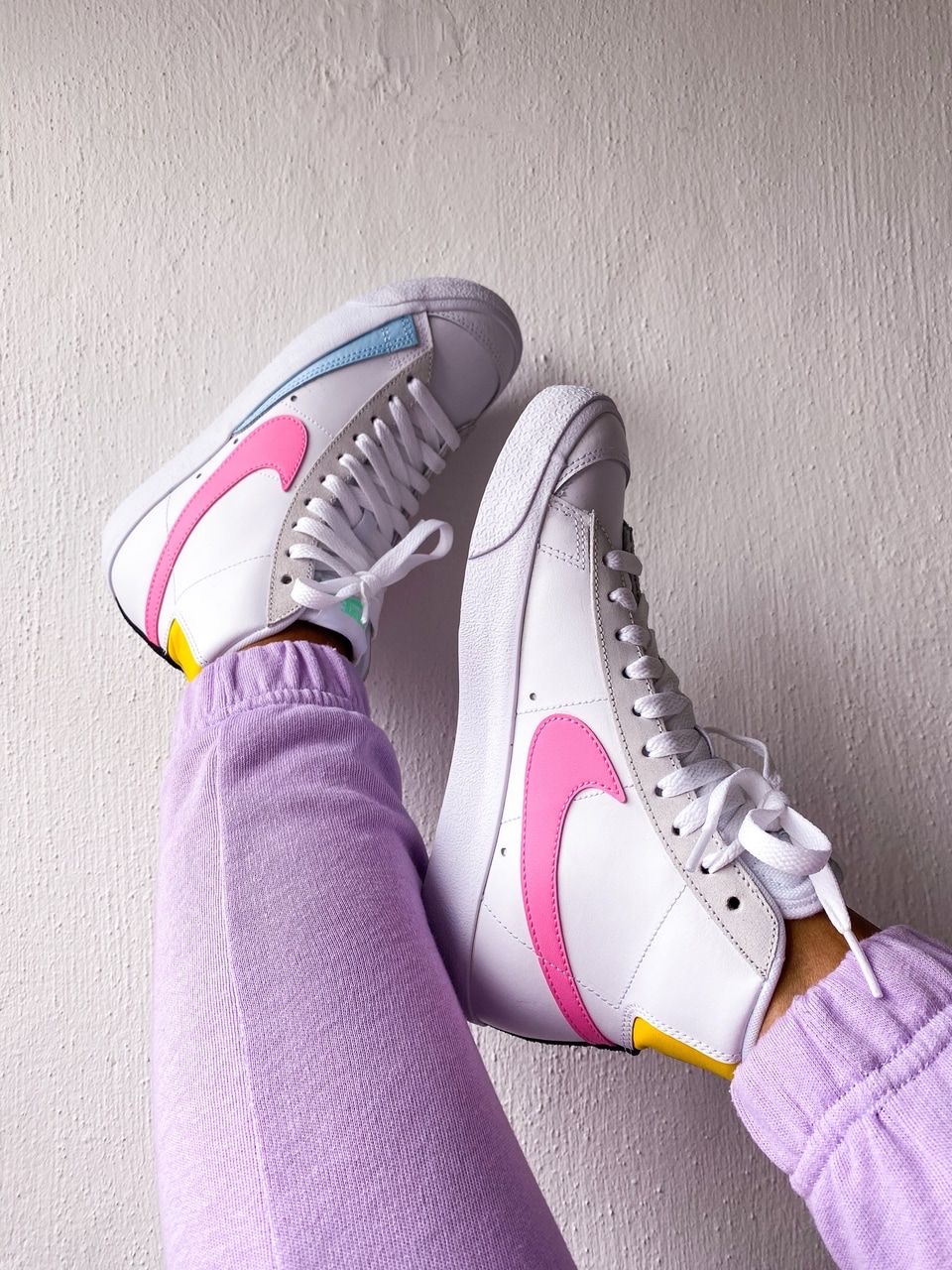 White pink yellow high waisted blazer