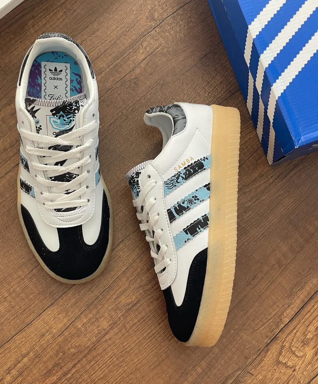 Adidas Samba - White, Black, Blue