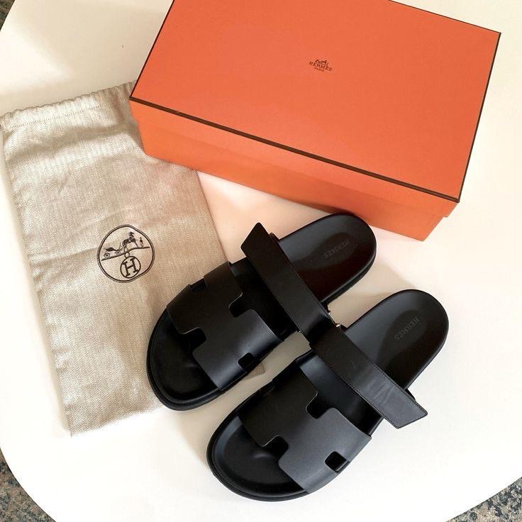 Hermès slipper bkack fushe