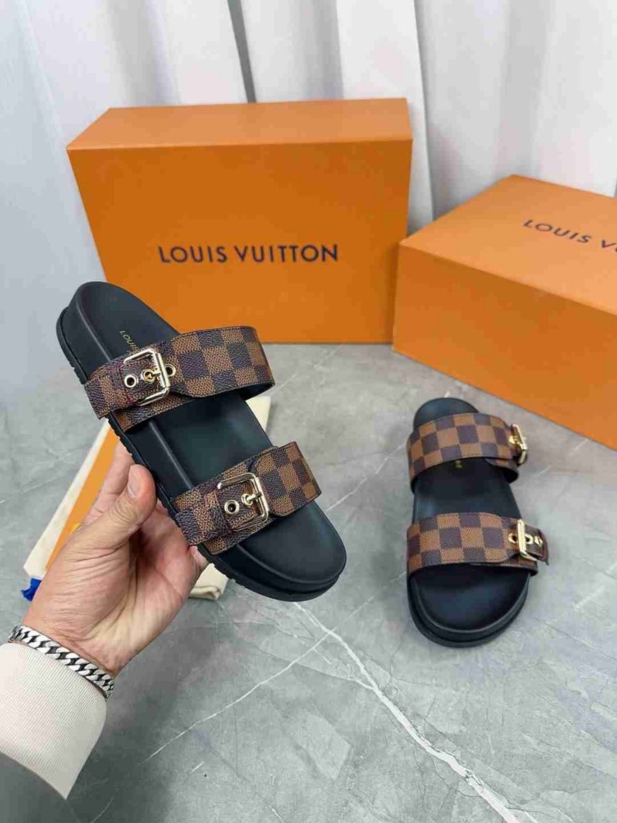 Louis Vuitton Checked Slippers - Brown